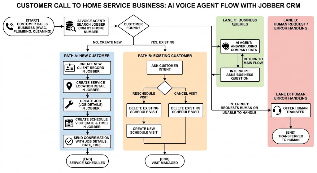 Built using Retell AI (voice agent), n8n (automation), and Jobber GraphQL API to eliminate manual data entry and streamline HVAC job scheduling.